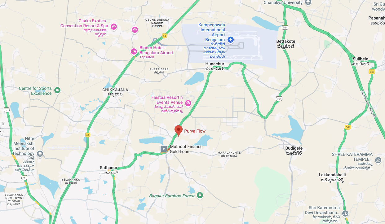 Purva Codename Flow brings resort-style living to North Bangalore’s fastest-growing corridor. Spread across approximately 25 acres at KIADB Aerospace Park, Bagalur, this project offers 2, 3, and 4 BHK apartments in 8 high-rise towers with views that stretch beyond the everyday.